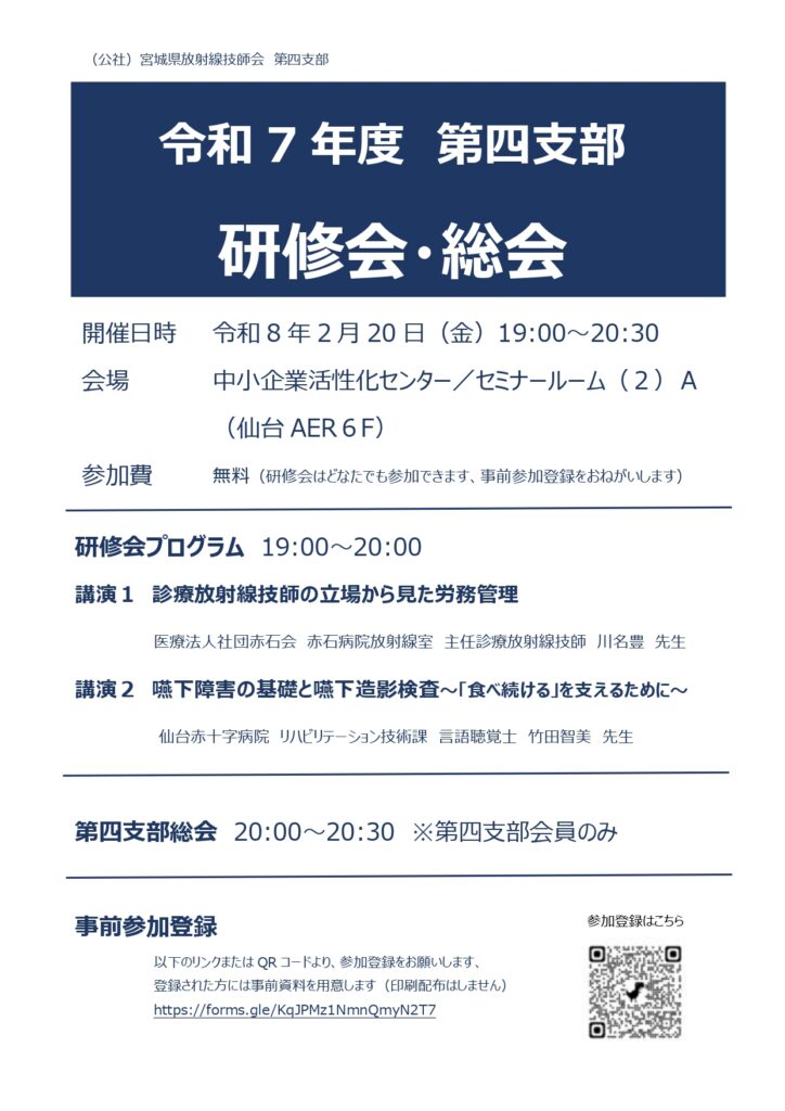 > 2月20日 第四支部研修会・総会開催のお知らせ