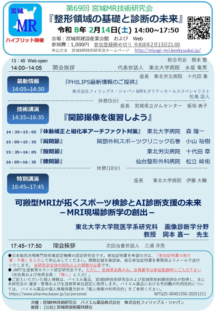ホーム  >   会員のみなさまへ  >  研究会・イベント  >  2月14日 宮城MR技術研究会開催のお知らせ